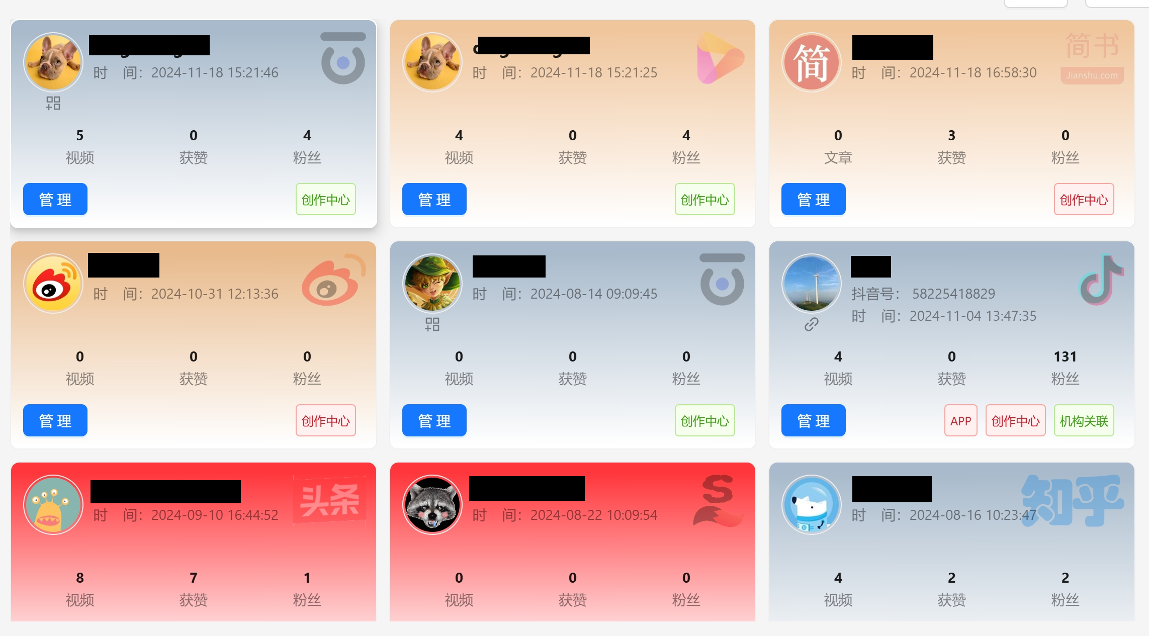 可以授权多个媒体平台的账号到系统中进行统一的管理,定时或者手工都可同步粉丝、点赞等数据